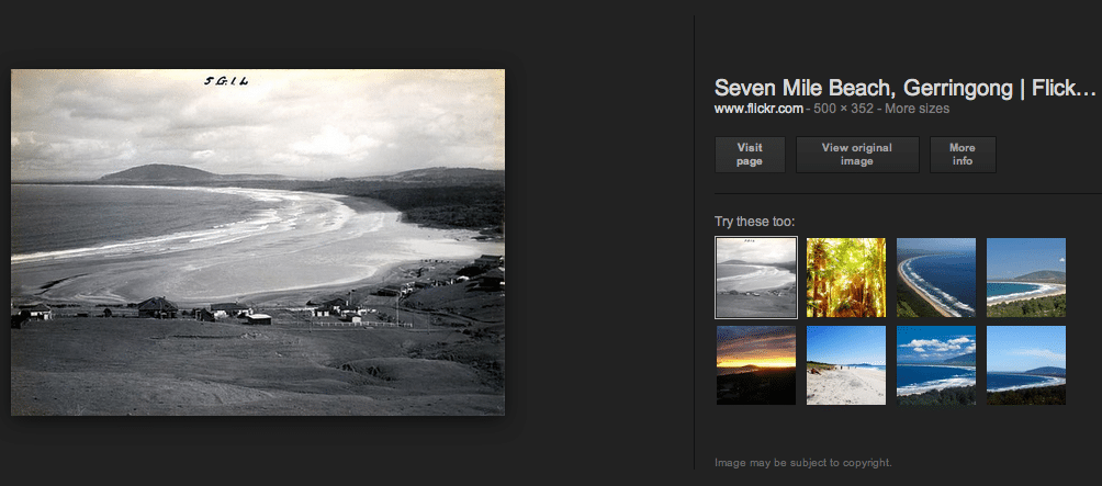 5. Find an image you like and click on it. Google displays it in a black area. Click on the ‘Visit Page’ button to the right of the image and check it is ok for you to copy and use it on your website or Facebook page i.e. that you won’t be infringing someone’s copyright.